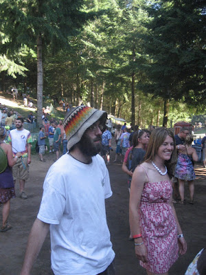 12:00 PM: After laying around and enjoying the fire, we decide its time for that day hike. We don our lighter packs and head east along the trail. We were told by some old folks at the trailhead that the trail maintenance only went as far as our current location, but we thought it was worth a shot. (They were staying at the campsite along the service road near the trailhead in an effort to avoid the fireworks, which their dogs disliked. Some more conversation revealed they also disliked Seattle and its necessary evil.) We were able to make progress for about a half mile, but soon began losing the trail. Most of our time was spent futilely searching for sawn trees and faded pink ribbons. Finding the trail was one problem, climbing over huge blown down trunks was another. We did wander threw an awesome swampy area with beautiful trees.