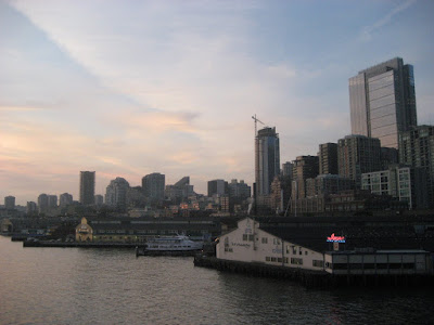 6:30 PM: Leaving the comforts of Seattle behind, I make my way downtown to take the Washington State Ferry to Bambridge Island and the Olympic Peninsula. The bus ride home foretells hardships, as holiday traffic has backed up Aurora Avenue from Downtown to Fremont. I quickly load the car and take alternate routes in hopes of descending on the pier from the east. This plan only slightly works, as I discover the vehicle line forms from the south, thus presenting a tangle of switchbacks beneath the Alaskan Way Viaduct.